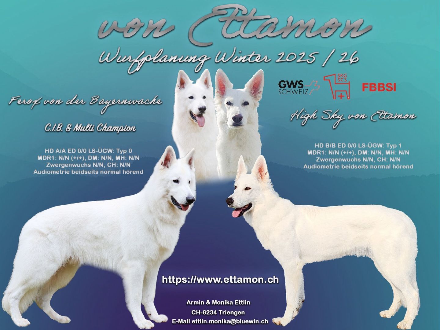 Der Name Ettamon ist abgeleitet von Ettlin Armin & Monika. Wir sind Mitglied der Gesellschaft Weisser Schäferhunde Schweiz GWS und SKG / FCI anerkannte Zuchtstätte.