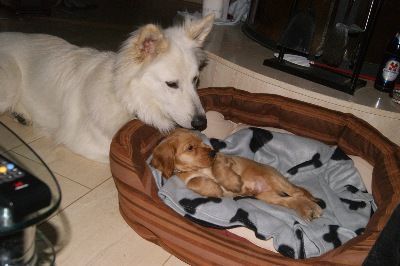 Tara stand bei Jackie Strub in der Zucht und hat im Februar 2014 10 Welpen aufgezogen.