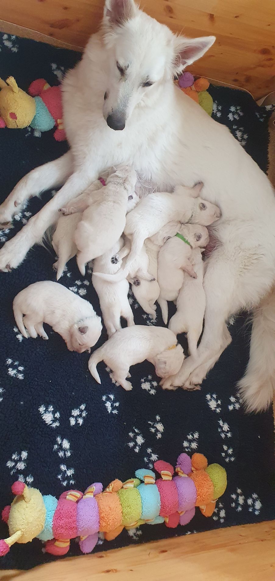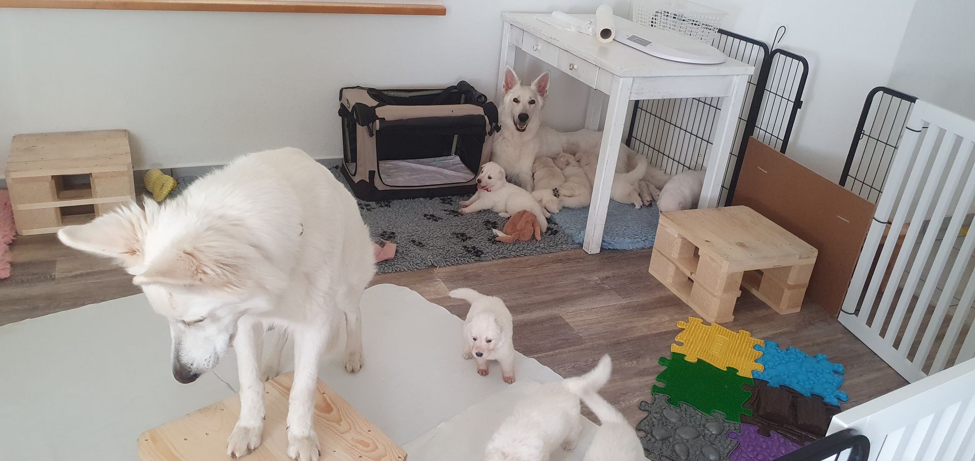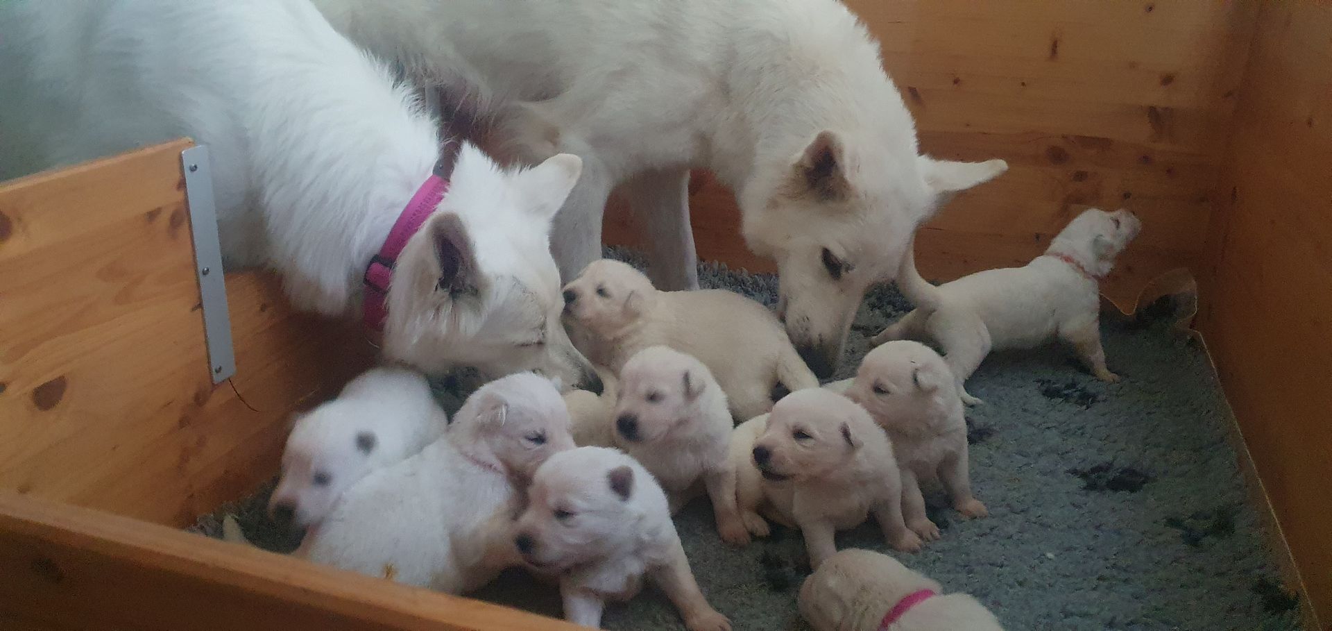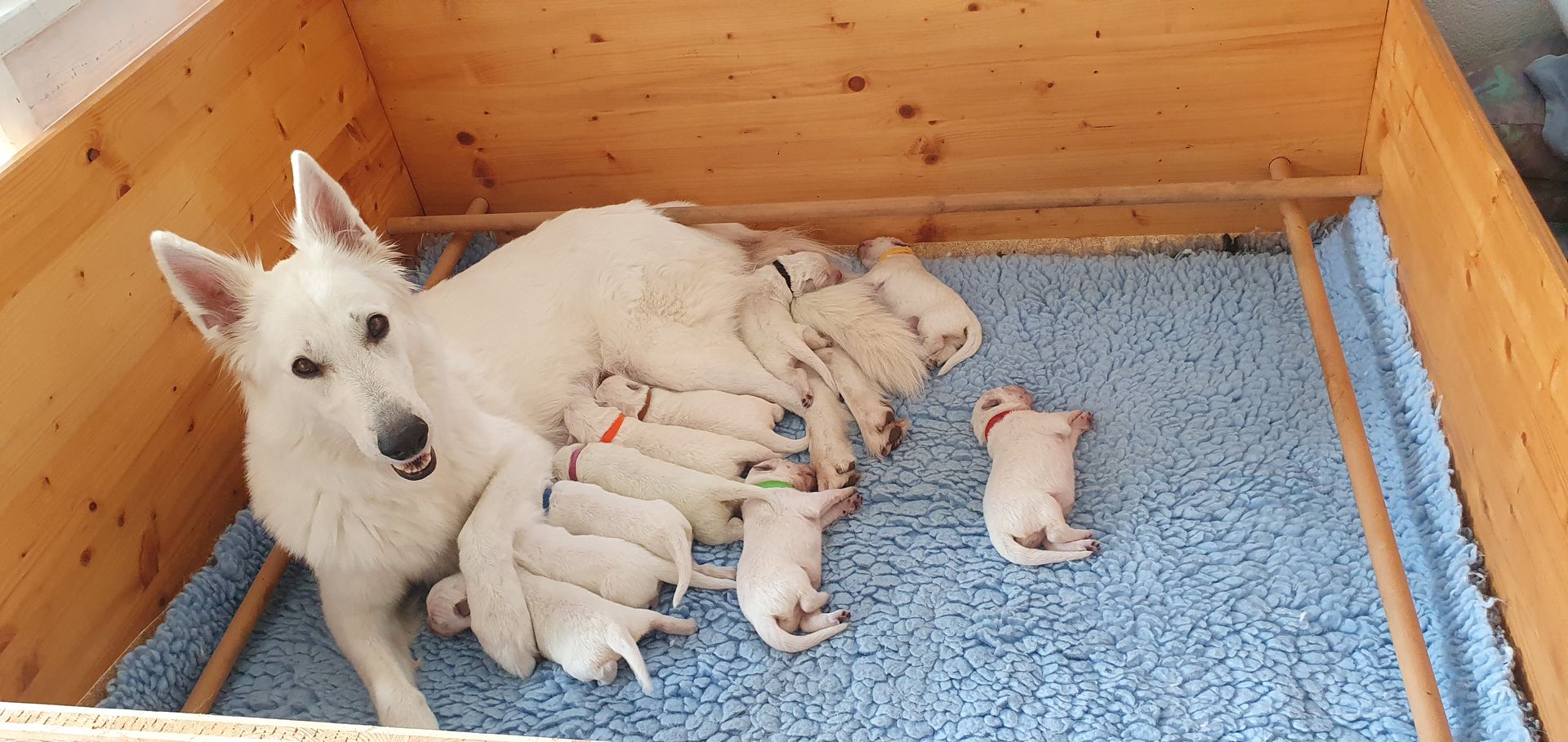 Mutter und Welpen geht es gut und wir freuen uns auf die kommenden Wochen mit der großen Hundefamilie.
