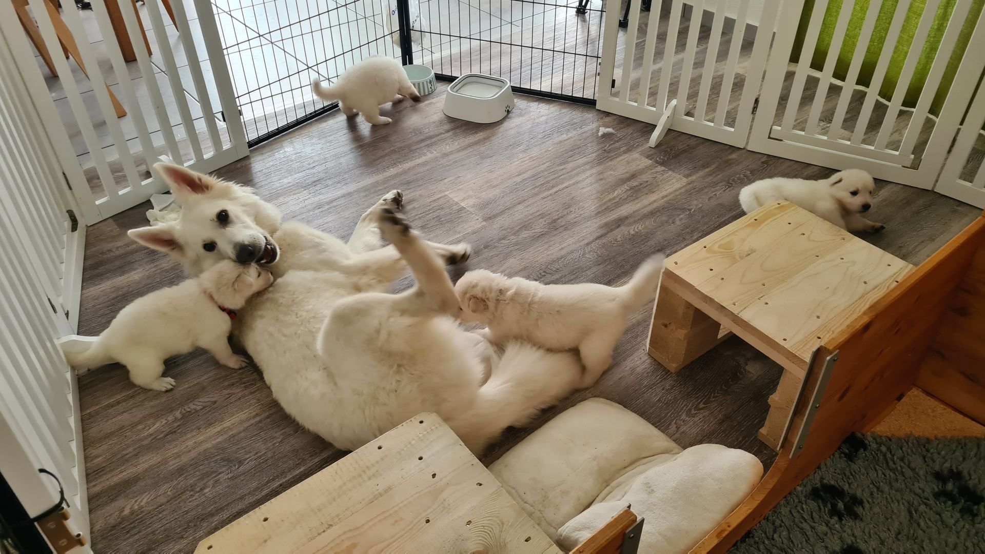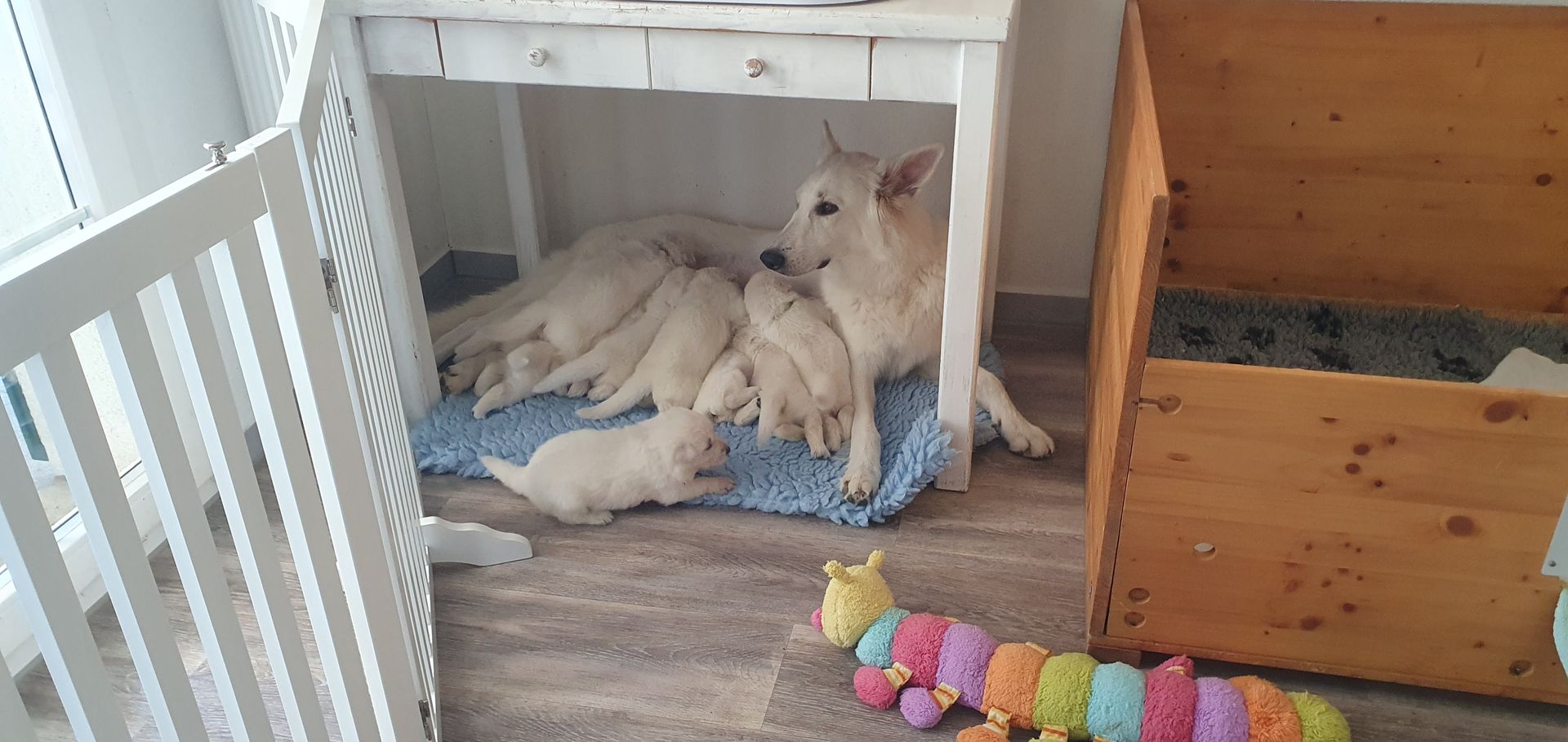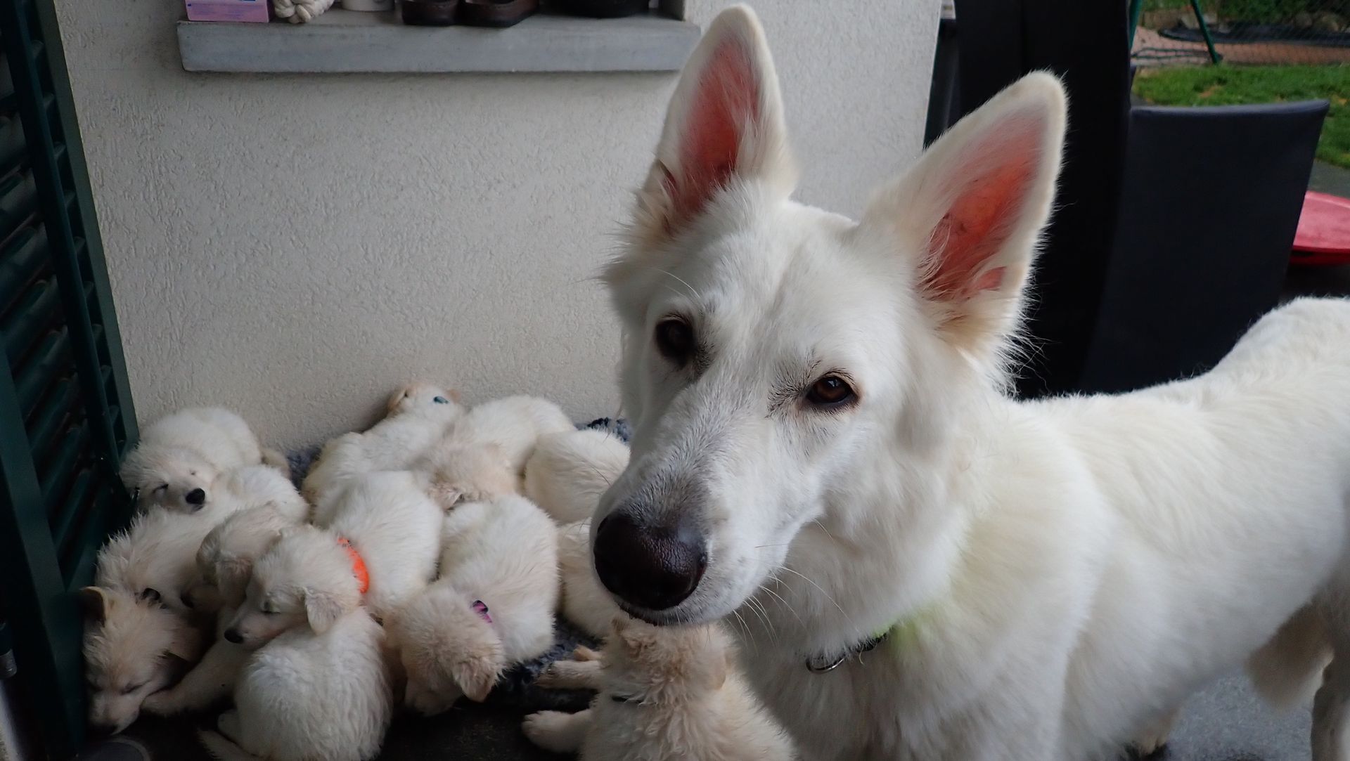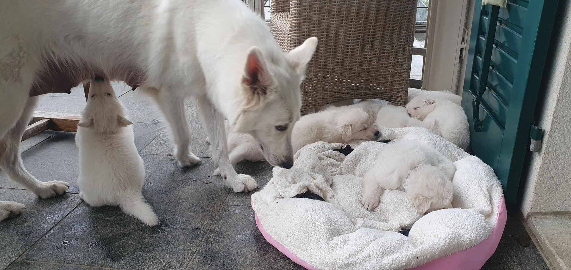 Mutter und Welpen geht es gut und wir freuen uns auf die kommenden Wochen mit der großen Hundefamilie.