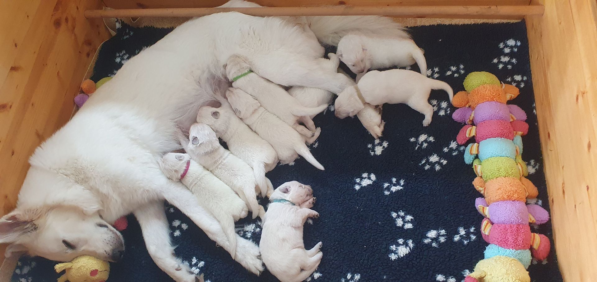 Kylie hat am 4. Juni 2025 zehn Welpen geboren. Es sind 5 Rüden und 5 Hündinnen.